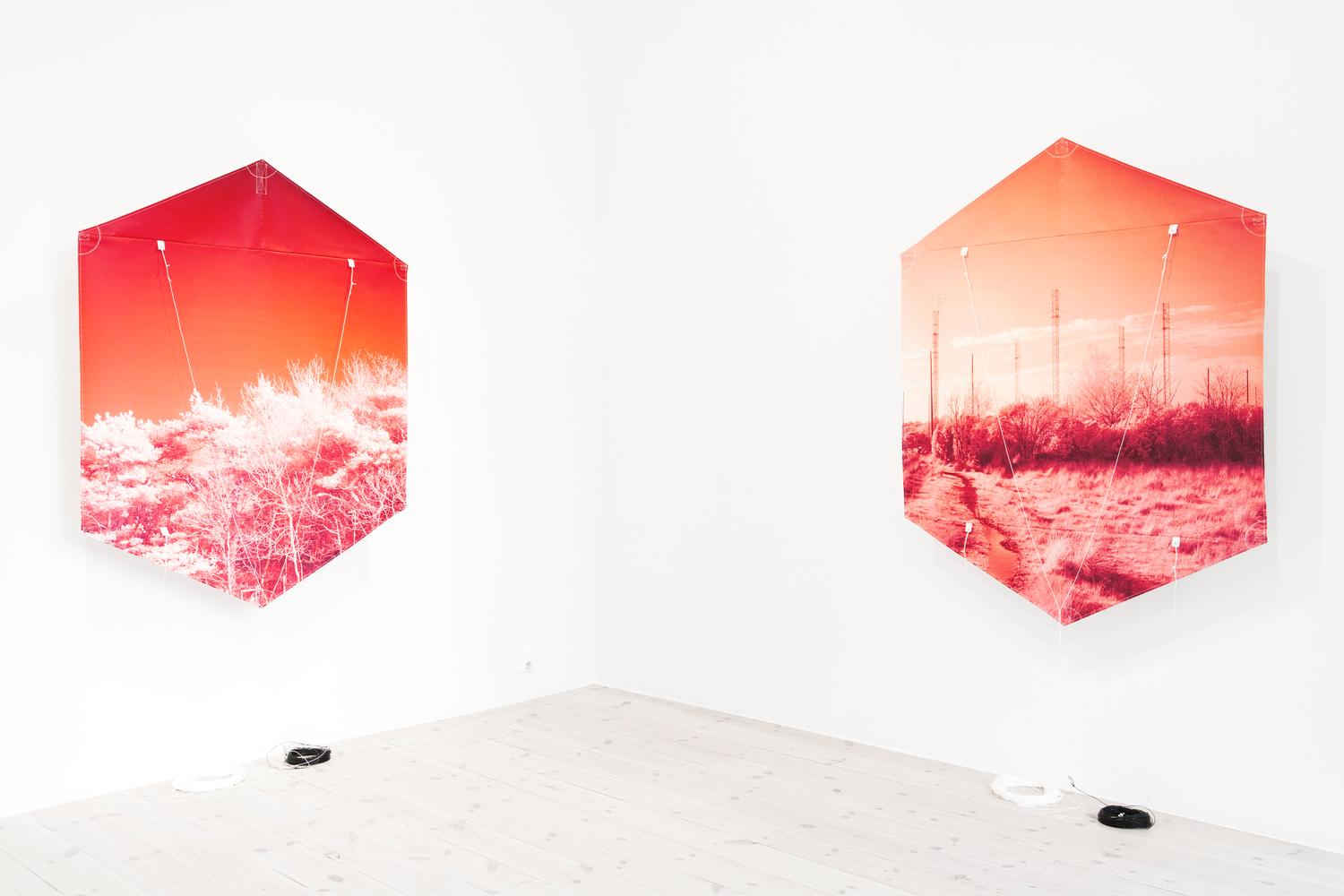- Kites series, Inkjet print on canvas, high aspect sailcloth, wrapped carbon tubing, antenna wire, kite line, 2016